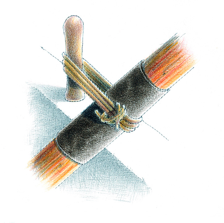 Les bouts et chutes qui traînent à bord d’un bateau permettent de répondre à une grande partie des besoins en équipement du bord. Ainsi, pour réaliser une estrope d’aviron, on peut utiliser un toron d’aussière ou une lanière de cuir. Un nœud d’arrêt réalisé à une des extrémités du cordage – demi-nœud ou nœud en huit – , on fait trois tours entre le tolet et l’aviron en prévoyant un débattement suffisant pour pouvoir nager sans gêne. Il suffit alors de brider les trois tours en capelant deux demi-clé près du nœud d’arrêt.