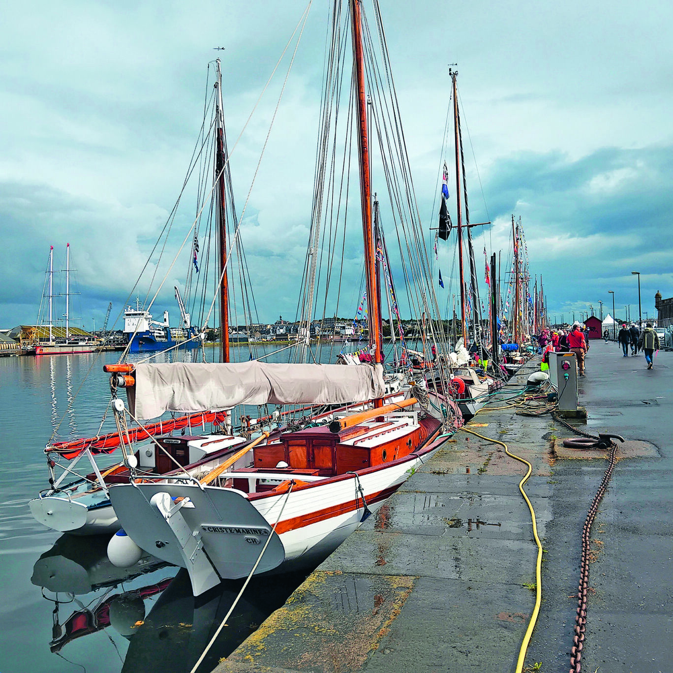 L’ambiance festive qui monte le long des remparts de Saint-Malo fait un peu oublier le temps chagrin de ce début juin. Déjà plusieurs dizaines de bateaux traditionnels sont amarrés au quai Saint-Louis – yachts de petite plaisance, voile-aviron, macrotiers malouins, unités de travail. Une gageure alors que la Semaine du Golfe vient de s’achever et que la saison commence pour les bateaux commerciaux. Trente-sept bateaux sont venus en voisins de la Rance et des environs de Saint-Malo, d’autres arrivent du littoral breton, de la façade atlantique, d’outre-Manche et même du nord et du sud de l’Europe, pour ce rassemblement organisé par la Fédération des vieux gréements de France, le premier de cette ampleur depuis une dizaine d’années, cinquante ans après la création de la section française.