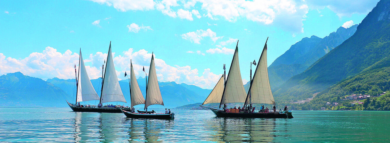 Venu d’Orient, puis de Méditerranée, ce type de gréement est apparu sur le Léman au XIIIe siècle, d’abord pour un usage militaire, puis pour le transport de marchandises et de personnes. Permettant d’éviter les voies terrestres difficiles et peu sûres, et capables de remonter au vent, les voiles latines ont régné jusqu’à la fin du XIXe siècle avant de céder la place à la vapeur.
