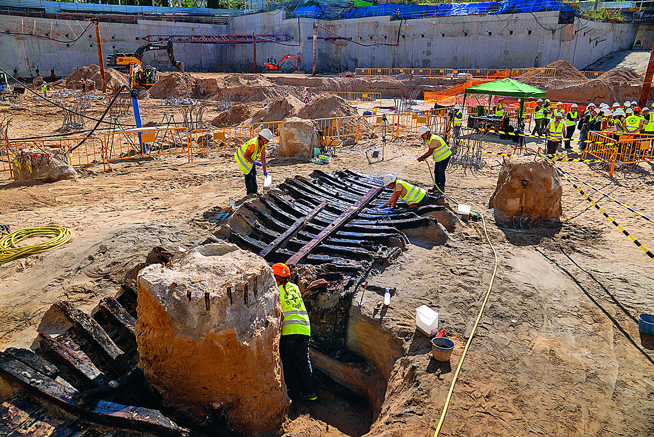 En avril dernier, des archéologues espagnols sont tombés sur les imposants vestiges d’un bateau du XVe ou du XVIe siècle en fouillant le site d’un ancien marché aux poissons, près du port de Barcelone. Long de 10 mètres sur 3 mètres de large, le fragment de coque en bois a été mis au jour dans une couche sableuse à 5 mètres de profondeur. Les scientifiques supposent que le bateau auquel il appartenait a coulé à cet endroit lors d’une tempête, à une époque où cette partie de la capitale catalane était immergée. Sous l’effet de la dérive littorale, la plage a progressivement recouvert cette zone. Surnommé Ciutadella I en l’honneur du parc voisin, ce bateau est la deuxième épave médiévale identifiée au cœur de Barcelone, dix-sept ans après la découverte d’un autre navire du XVe siècle, le Barceloneta I, près d’une gare. Pour l’archéologue qui mène les fouilles préventives, Santiago Palacios, « Barcelone est une ville d’archéologie pure ». Son équipe espère que les assemblages des bordages sur les membrures par des clous en fer et des chevilles en bois les renseigneront sur les techniques de construction navale méditerranéennes de la fin du Moyen Âge.