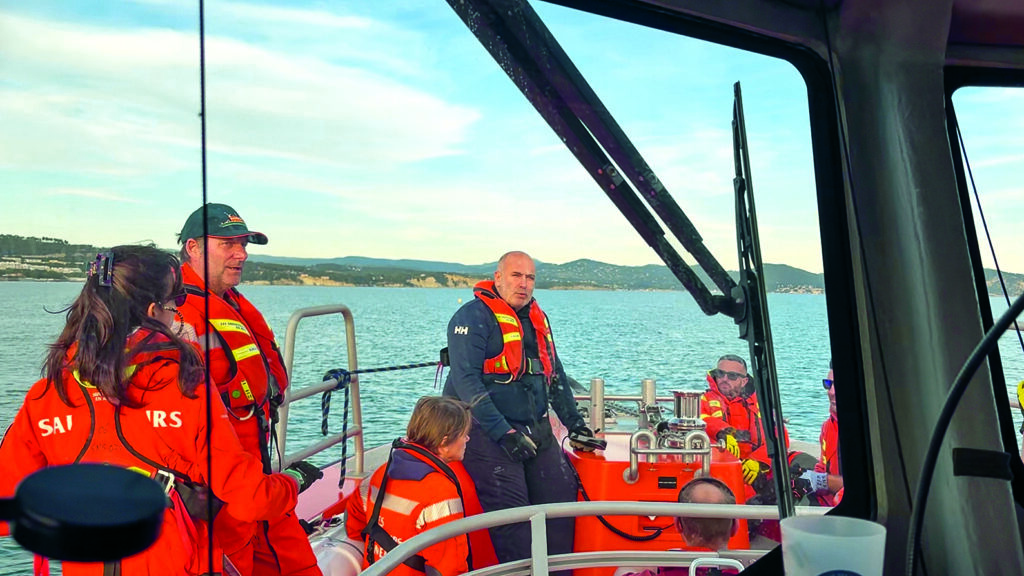 L’équipage est en phase d’appropriation de son nouveau canot. Les exercices sont basiques. En sa qualité de cheffe de pont, Sarah Danglos coordonne un mouillage. Peu après, le patron détaille la mise en œuvre du système d’extinction automatique de la machine. Un membre d’équipage lit à haute voix les instructions inscrites sur le coffret et les effectue scrupuleusement devant ses coéquipiers attentifs.