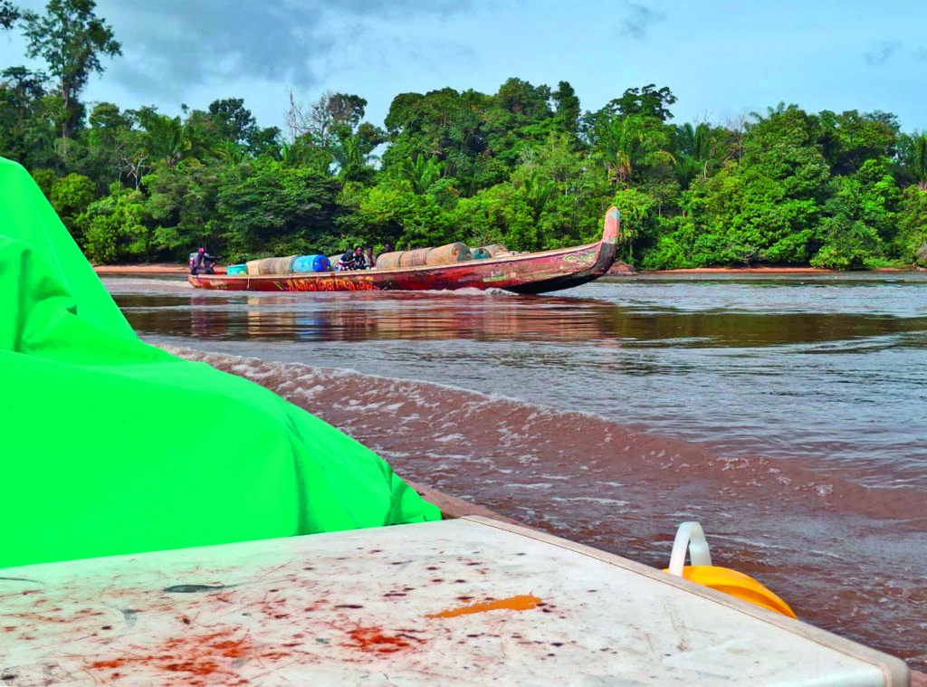 Brusquement, le cours du fleuve s’élargit et on a l’impression de naviguer sur un lac. Ce n’est qu’un long bief où des « coques alu » transportent surtout des passagers. Autant les Ndjukas sont familiers des pirogues en bois, autant les Brésiliens qui vivent le long du fleuve pratiquent des pirogues en aluminium, plus légères, mais moins adaptées au passage des sauts. Ils portent des noms à connotation religieuse, comme Deus Conosco (« Dieu est avec nous »). Peut-être jettent-ils aussi du rhum à l’eau avant de mettre leur moteur en marche ? On n’est jamais trop prudent.