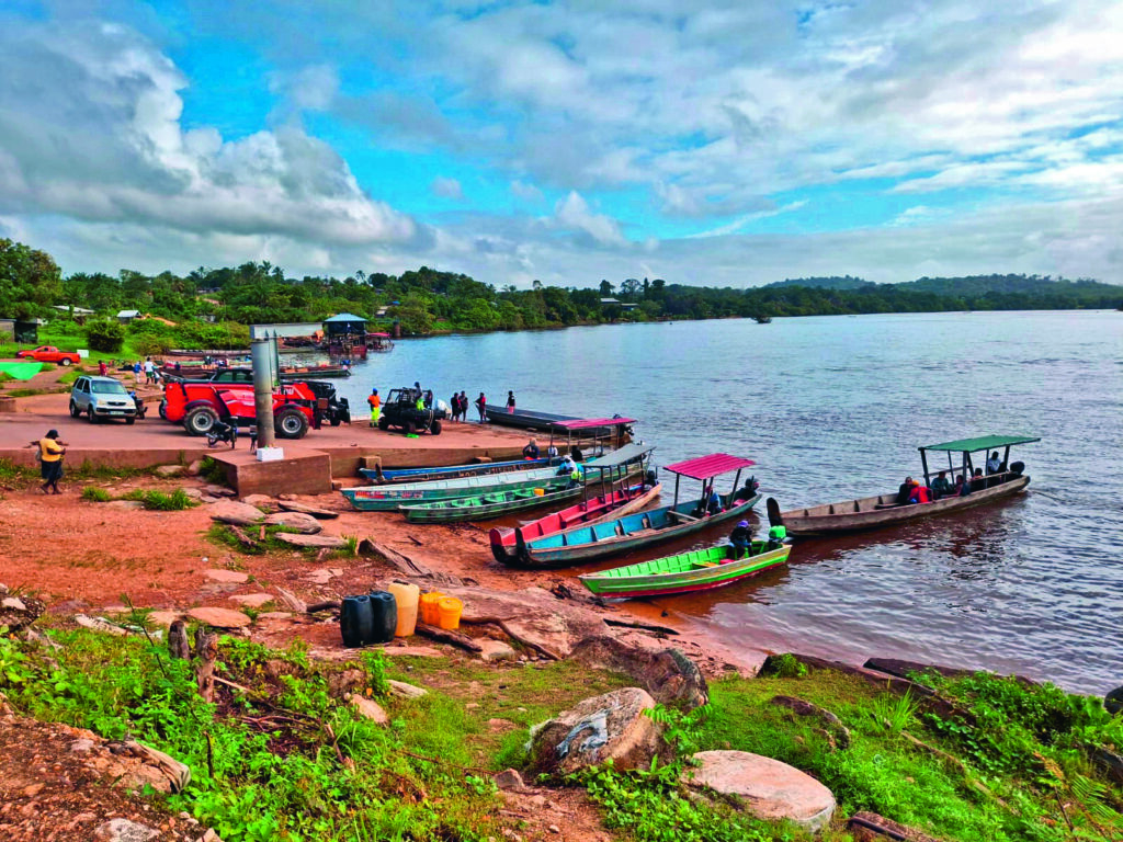 à Papaïchton circulent des voitures et des motos. Comment sont-elles arrivées là ? Même question pour les tractopelles et les barils de combustible qui alimentent les microcentrales électriques. Les pirogues sont essentielles pour mener une vie à l’européenne ou s’en approchant. Maripasoula et ses maisons colorées à flanc de colline apparaissent au détour d’une courbe. Juste en face, c’est Albina 2, ville-champignon construite sur le modèle d’Albina : mêmes activités, même monnaie forte, mêmes populations surinamiennes, brésilienne et chinoise. Au sud de Maripasoula, le fleuve devient rivière, change de nom et rétrécit ; l’accès y est – théoriquement – contrôlé et protégé. Sur les documents diplomatiques, c’est la « section 4 » du protocole de 2021, qui reste encore à délimiter et qui le sera peut-être un jour. Là n’est pas le souci de Papa Sawami. Lui va tenter de trouver du fret pour la descente, des barils vides par exemple. La routine. ◼
