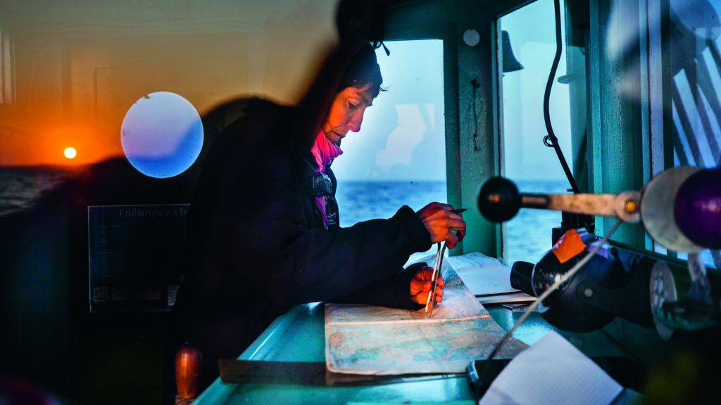 Alors que l’île de Sein se profile à l’horizon, un petit oiseau marin survole les vagues à quelques mètres. Puffin ou océanite tempête ? Chrystelle attire l’œil des passagers, sort un guide ornithologique. « L’observation, l’attention à la faune et la flore, c’est quelque chose que je tiens à transmettre. L’année dernière, au large de Lesconil, on a vu du zooplancton. On s’est arrêté, on a pris le temps de regarder, de se poser des questions ensemble. Ça fait partie des choses que permet la vie en mer. »